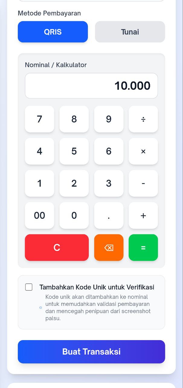 QRIS Anda akan memiliki kode unik di belakang nominal. Pembeli akan membayar dengan nominal tersebut (misalnya, Rp50.123). Ini membuat Anda bisa langsung memvalidasi pembayaran di dasbortanpa perlu bertanya ke pembeli atau memeriksa bukti palsu.